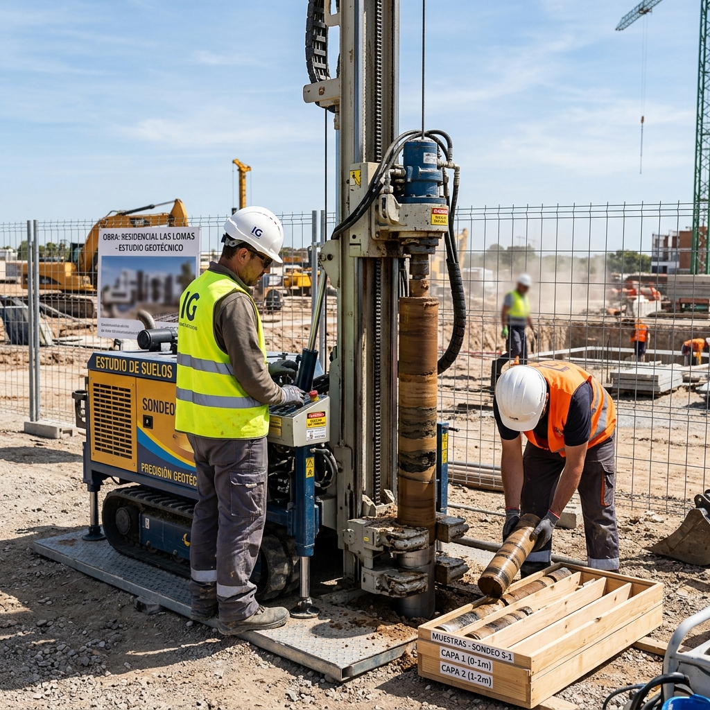 Análisis geotécnico integral. Integramos perforaciones profundas rotativas y pruebas de penetración estándar (SPT) in-situ para garantizar la absoluta seguridad de su cimentación.
