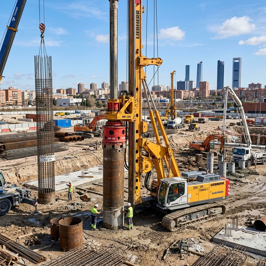 Diseño y ejecución especializada de micropilotes y pilotes preexcavados. Soluciones geotécnicas definitivas para transferir cargas pesadas a estratos competentes.